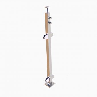Viereckiger Mittelpfosten für Glasgeländer mit 2 Querstabhalter.